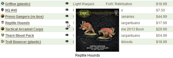 Aside from the filler information about model type and count, which book it’s from, and the MSRP, I’ve also set up a quick icon you can hover over that brings up a thumbnail preview of the model: