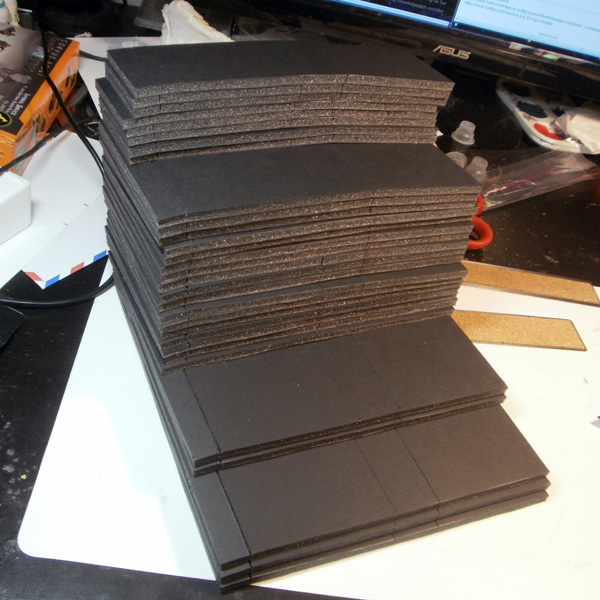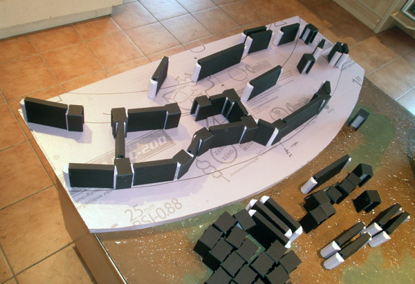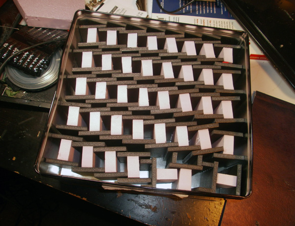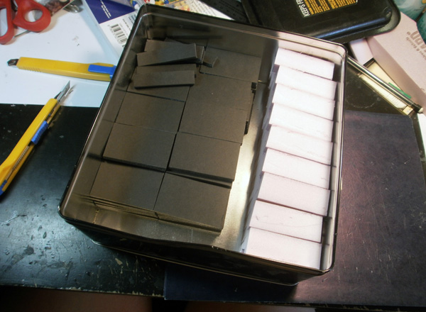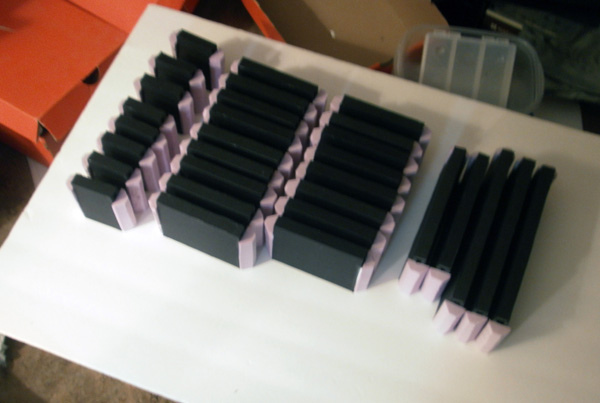 Finally, everything needed caps on top, so I cut out a whole bunch of small foamcore rectangles…