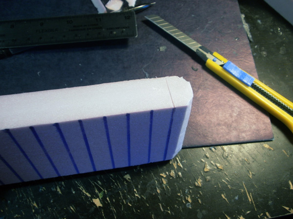 To get consistent measurements, I made myself a paper template with the cutting and folding points notched into it, then use the template to mark up an entire foamcore sheet.