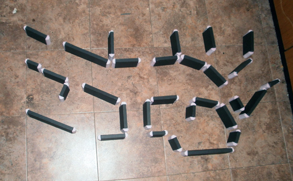 Once the walls were done, I needed to figure out how many connectors would be required to join everything together. To determine this, I laid the walls out on my kitchen floor in a plausible pattern…