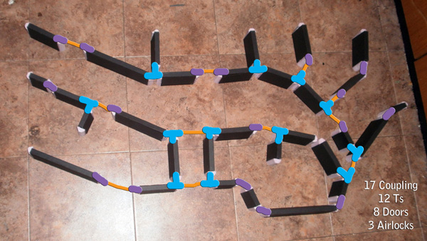 - The set works well in a game, and looks reasonably good, but it is INCREDIBLY time-consuming to set up, given that every single wall is a separate piece and needs to be strung together with connector pieces. An average Infinity board takes me about 15 minutes to set up, but an average space station board takes 45. All of the remaining work would have been focused on making the set look better, with no plans to make it work any differently, so even if I took the time to finish it up, this fundamental problem would never be solved.