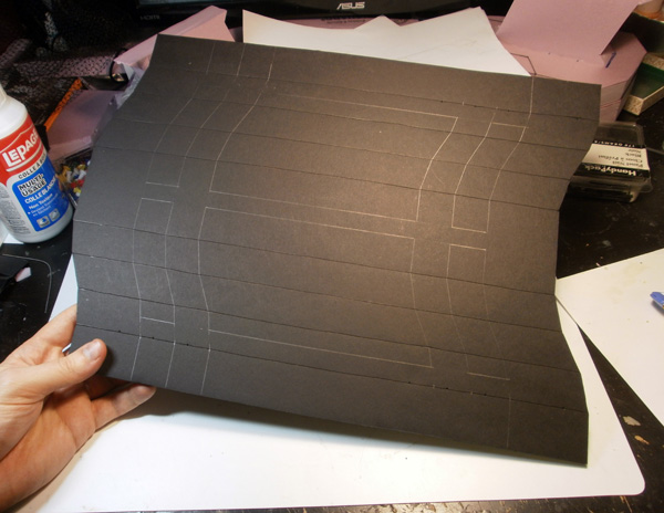 As usual, I was using black foamcore due to its generally more reliable quality, and a mechanical pencil for my marking since it’s reflective enough to see clearly against the black paper.
