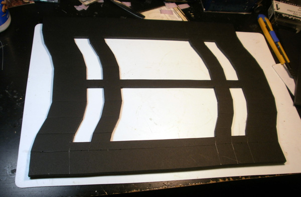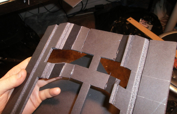 Cores were cut out alongside the crease lines to allow the wall segments to be folded inward. See my old foamcore cutting video for details on how this works.