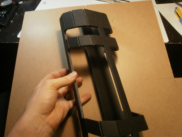 A quick backward test fold helped me confirm that everything was measuring up correctly; to do the proper final fold, I needed to cut grooves out of the foamcore next to each of the folds.