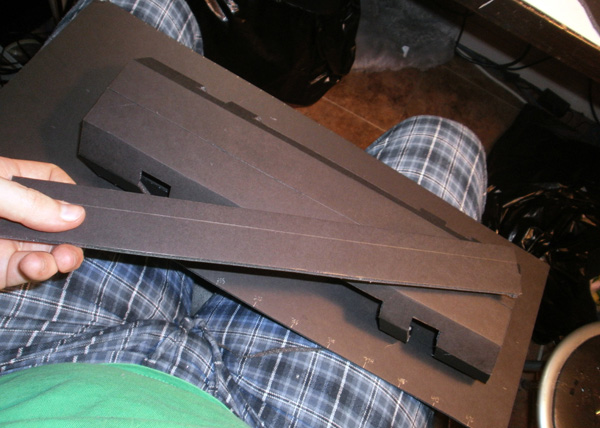 You can see the grooves cut out of the bottom piece, and the final tube as it appeared once folded into shape.