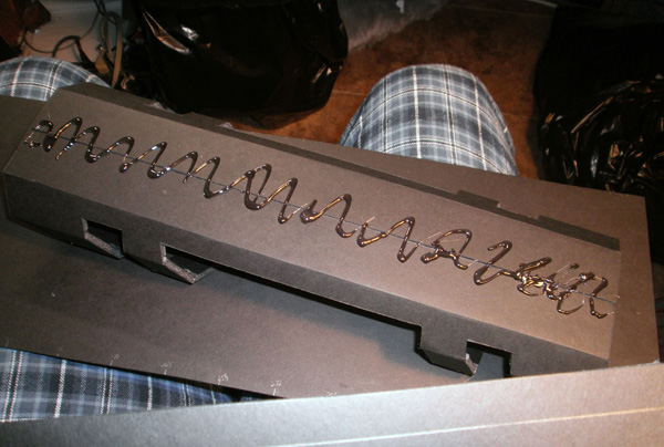 Here you can see the wave creating the multiple parallel “hoops”, and the connective bars that I left in place to keep the hoops linked up and correctly spaced.