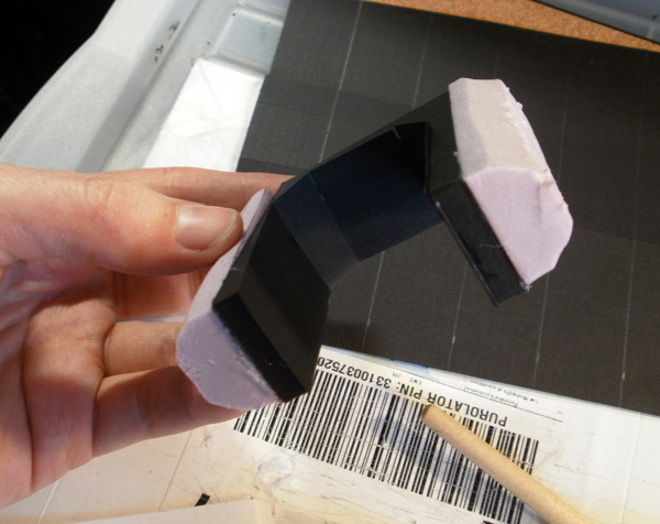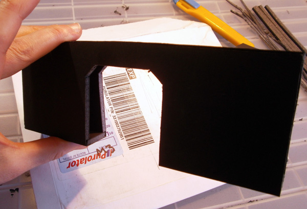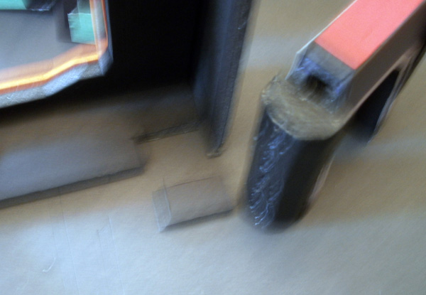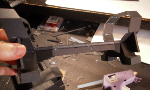 …and the elevator frame is a simple flat sheet of foamcore. The ends of the two pieces were stripped and then glued together.