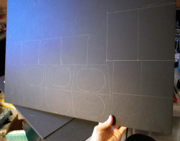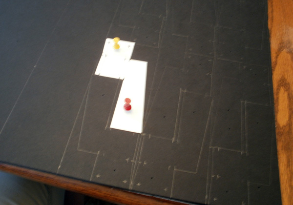 Next, I cut out another set of foamcore wall segments, and traced the door patterns over them.