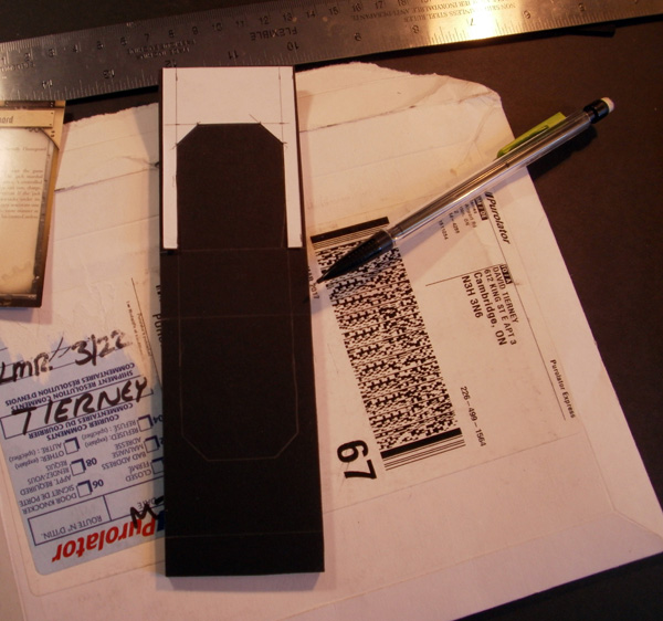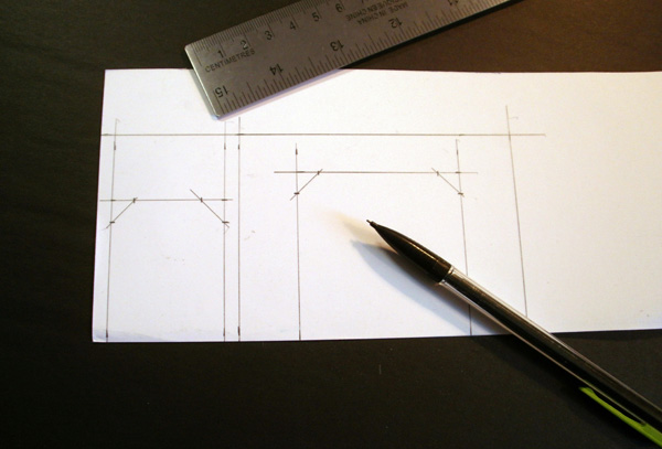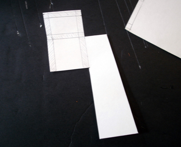 To start, I got out a piece of card stock and laid out patterns for a narrow door that fits within a 2″ space (and is tall enough for all 25mm silhouettes), and a wide door that fits within a 4″ space (and is tall enough for all silhouettes except the Maghariba Guard’s S8).