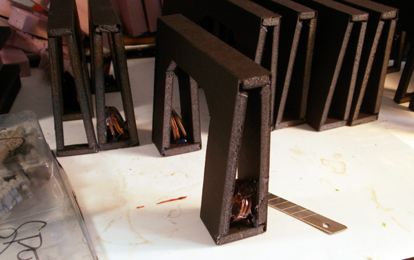 For the narrower pieces, I glued in bundles of pennies, which had recently been obsoleted here in the Fabled Canadas.