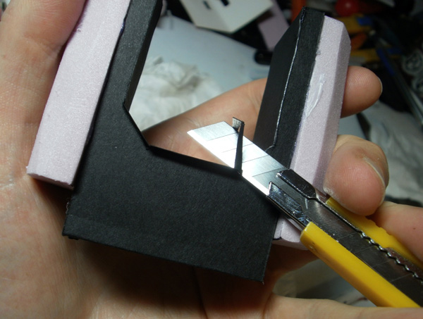 I wanted the doorways to open as close to the ground as possible, so I cut out the foam from the edges of the floor piece to let me sink the doors an extra 1/4″ lower.