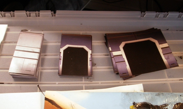 Once folded and glued, these completed the geometry for the outside walls to let them link side-by-side with other wall segments, as well as fitting in with the connection slots for the interior walls.