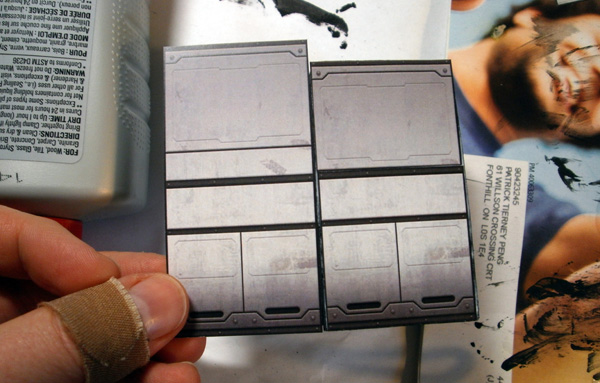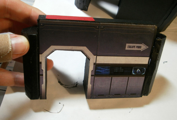 …and glued into place. By keeping all of the wall segments to even multiples of 2″, I could simply tile wall and door papercraft panels next to each other without needing to make specific full-width papercraft skins for each length of door segment.