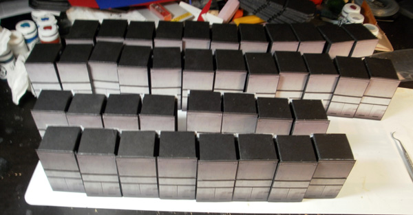 I then cut out a bunch more end caps, and stuck them to the sides of the wall segments.