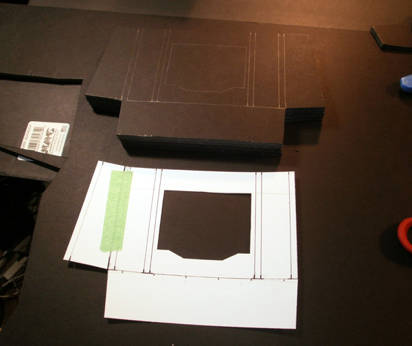 The templates seen earlier were drawn in Illustrator, then printed and transferred to a sheet of Foamcore.