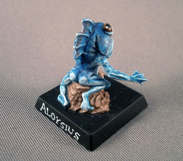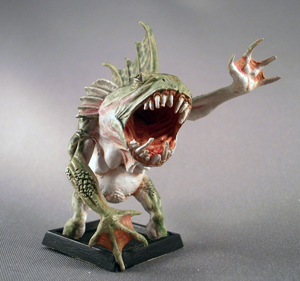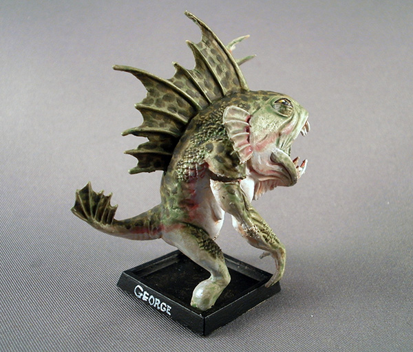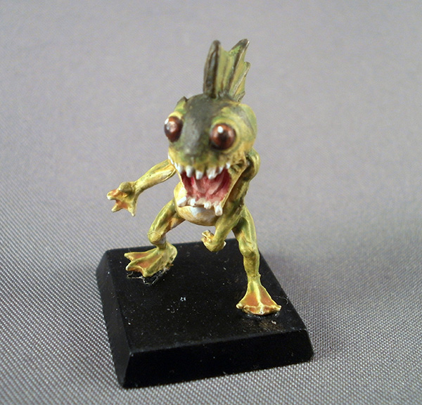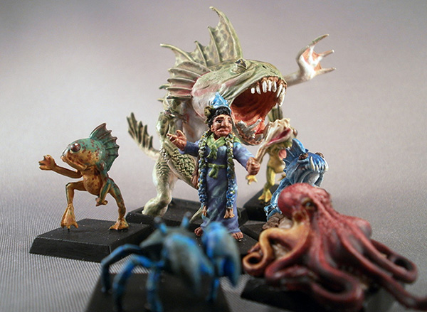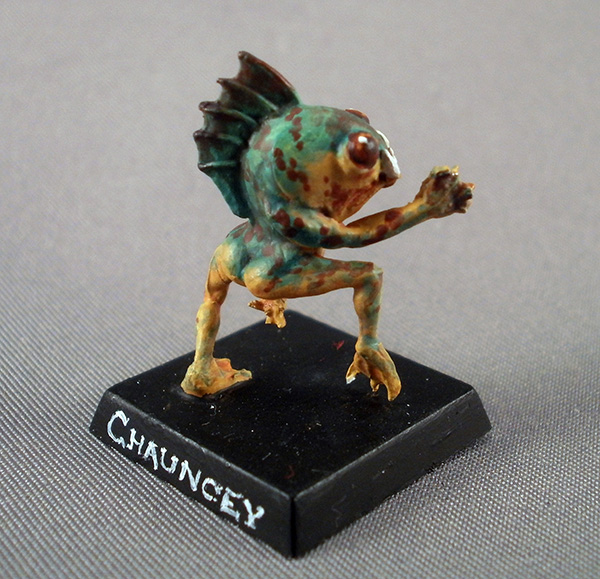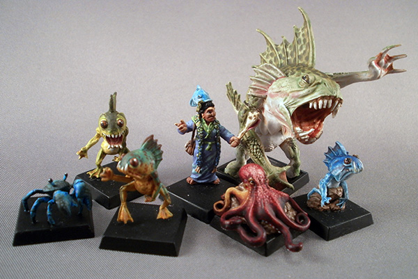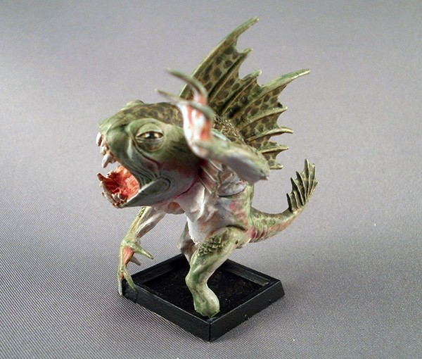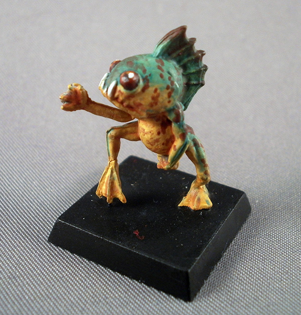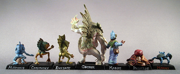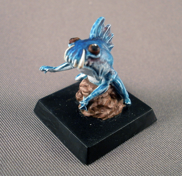 So in addition to my sculpted Pirisca/Margie miniature that you saw yesterday, I also needed a whole host of summonable minis to accompany her. As a result, I’ve spent the last month having an absolute blast painting fish and fishlike entities. Three months, if you include Rask and the Spitter. 🙂