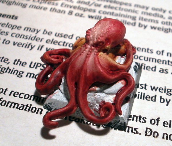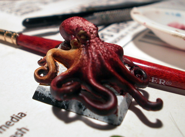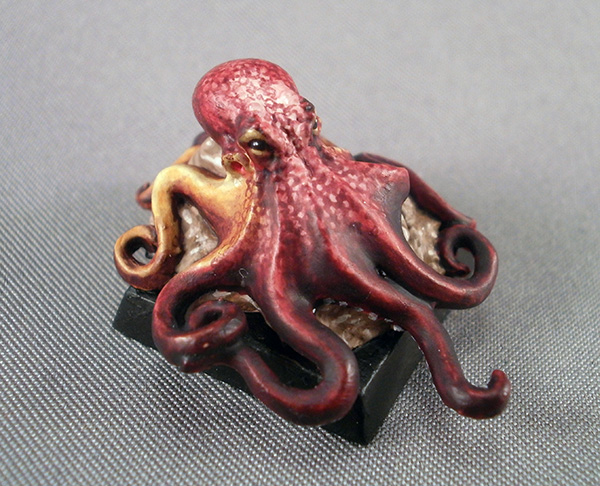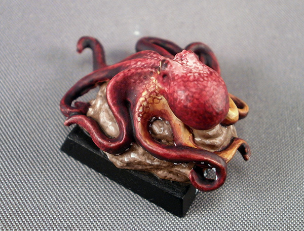 Coconut octopi are one of the most beautiful animals I’ve ever seen, and the mini I painted based on them (an old Reaper Aquatic Familiar) is one of the best I’ve ever done. I was so happy with the result that for once I’ve decided not to delete my painting progress shots as I usually do, and instead walk you through how I tried to replicate the majesty you see above.