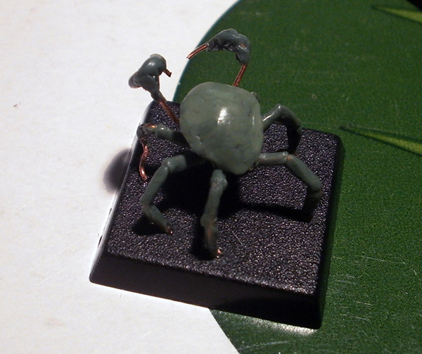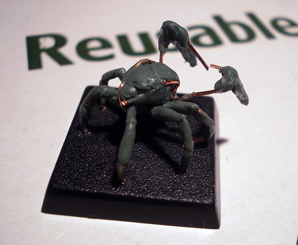 I wasn’t able to add supporting wires to Manny’s apocalypincers at the initial wiring stage, so I stuck them on now in preparation for more polished final puttying later on.