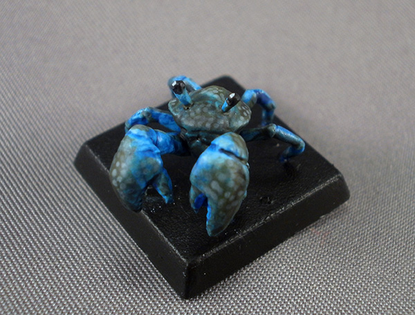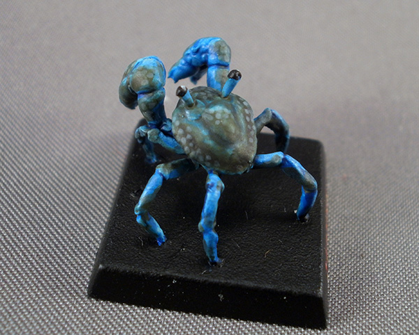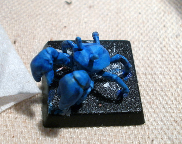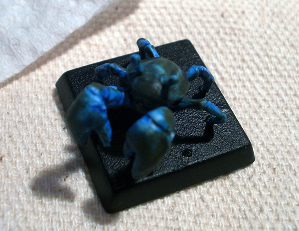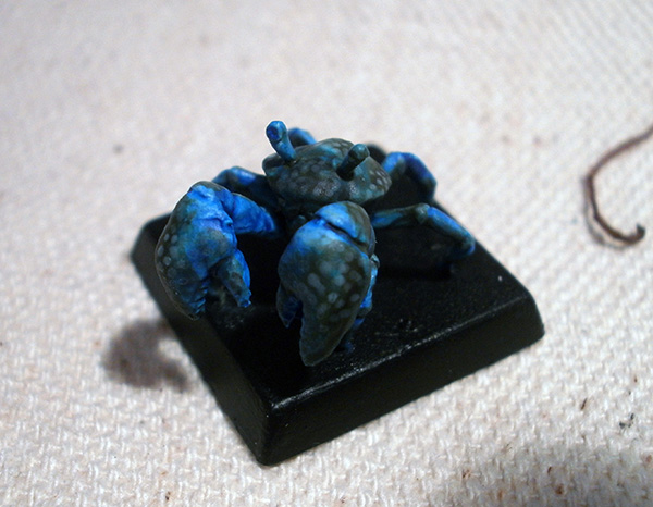 Madness, incidentally, is accomplished by basecoating in 50% GW Ultramarines Blue/50% white, washing in GW Enchanted Blue, and then washing again in GW Regal Blue.