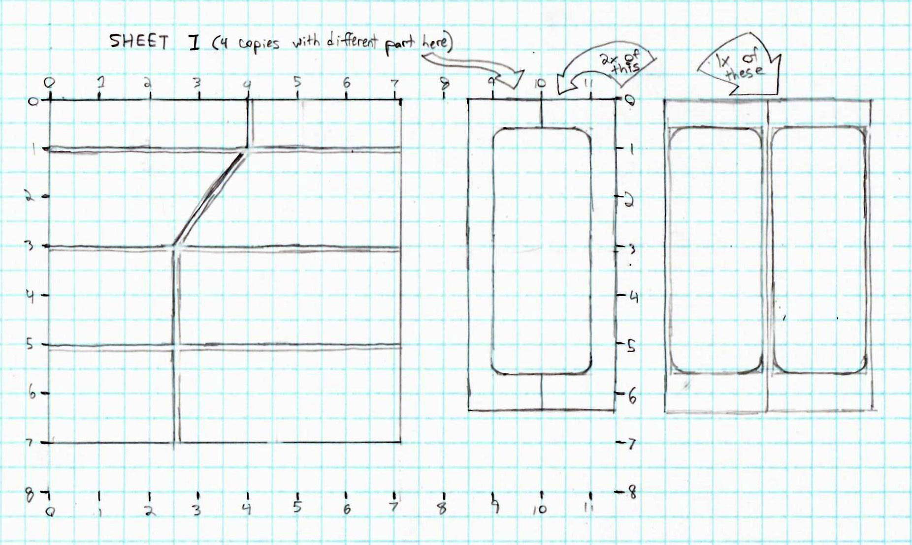 As I was laying out the panels for the base, I made a new sketch to help me keep track of where all the pieces go: