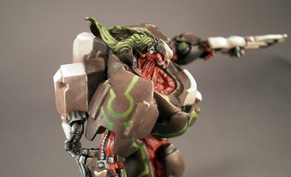 I decided that the Gorgos deserved to be an army centerpiece, so I lavished a lot of extra attention on the brown armour blends and all of the freehand, which I generally rush on my smaller models. And I frankly couldn’t be more pleased with the outcome. π