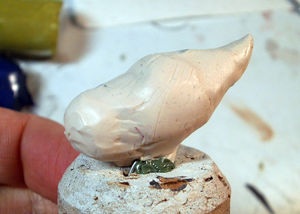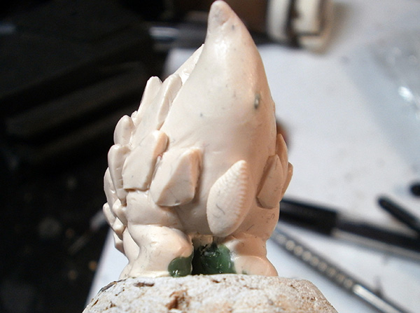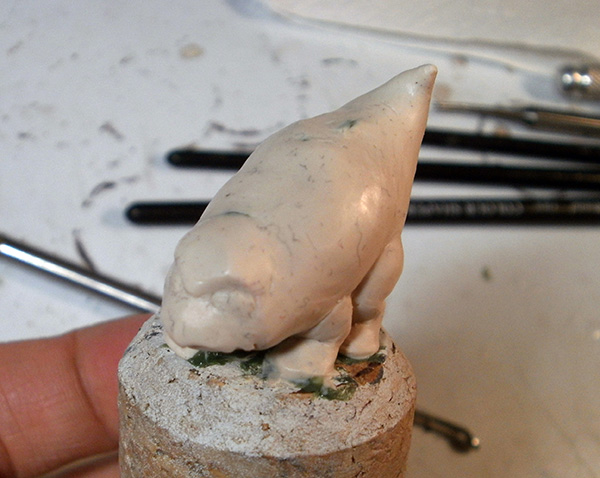 I thought that the visible tapering between the head and torso made her look a bit too much like a dinosaur, so I added additional clay to blend her head more smoothly into her body.
