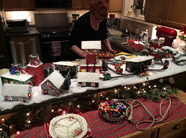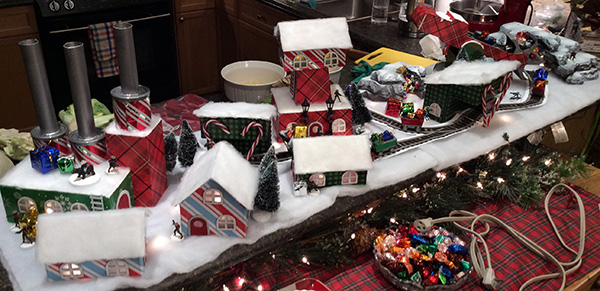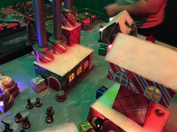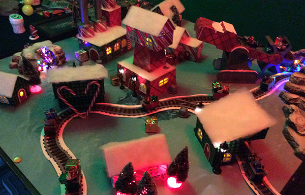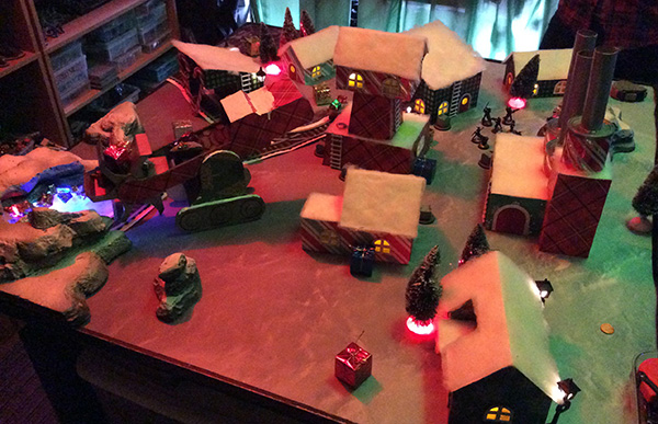 Under that dim illumination, the tea lights and dollar store trees and lampposts just looked absolutely incredible. 🙂