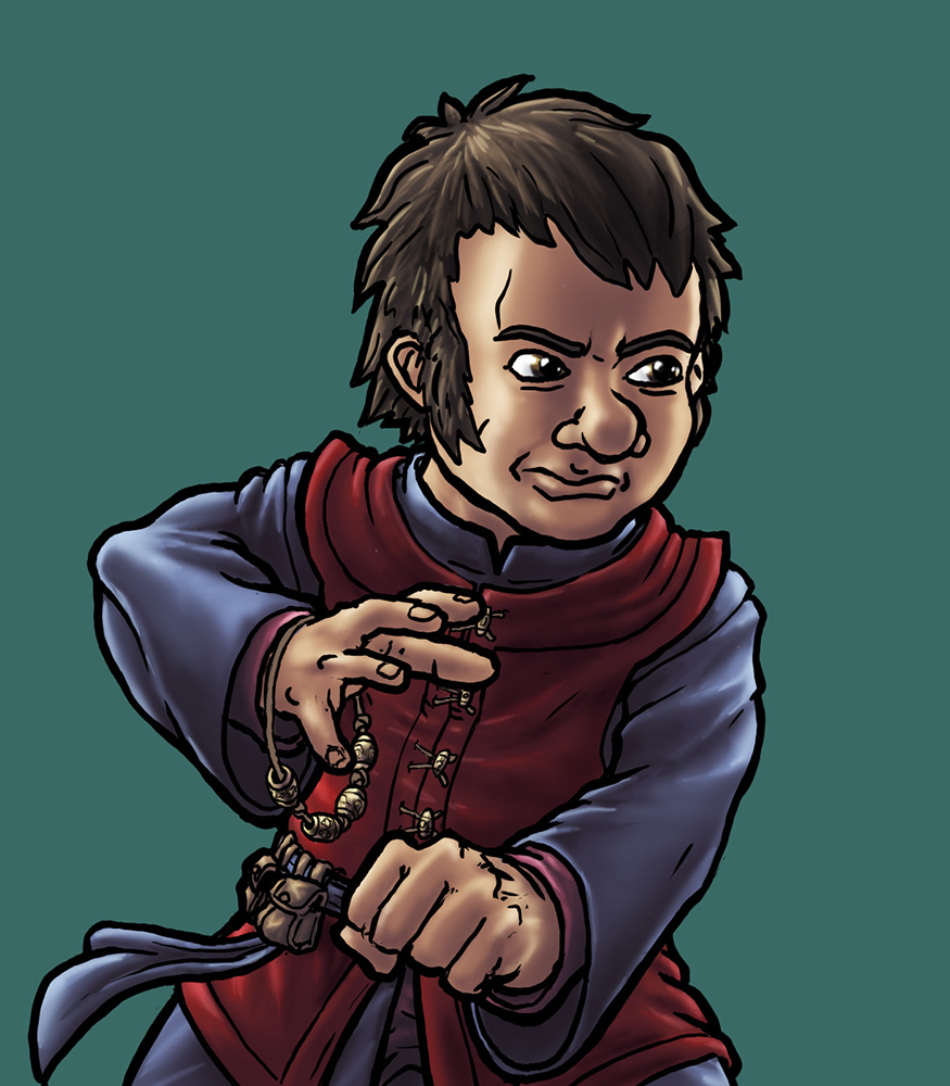 A few hours before the first session of the winter campaign, Gorwick’s player was pitching Spud on his new character, and in a moment of foolish confidence, he said, “He’s a halfling monk. Bet you don’t have a mini pre-made for one of those!”.