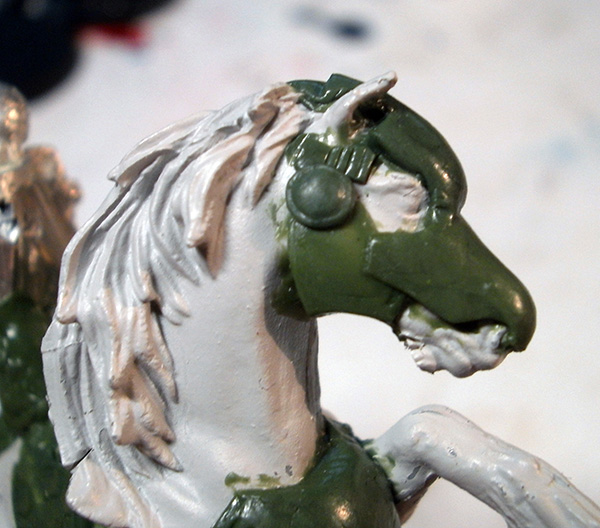 A lot of the transferred details were pretty meaningless, like here where I turned the knight’s breathing apparatus (at least, I’m assuming that’s what that is…) into basicallly a little windshield. Pointless, but it reinforces the reference to the Montesa.