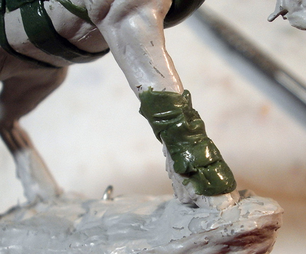 I typically sculpt with clay, which is an immensely forgiving material with a working time that stretches into months. However, I wasn’t going to be able to use clay for this project; clay needs to be baked, and the plastic model I was using as my base would be reduced to a puddle by that process.